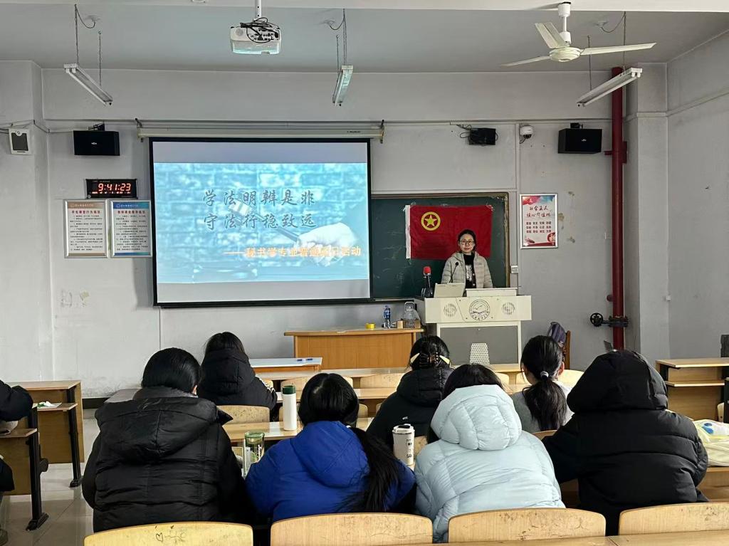 为积极创建学风特优型“一团一品”团支部,提升团员的法律意识和思辨能力,秘书学专业2302团支部于2025年12月12日在701教室开展了“学法明辨是非,守法行稳致远”普通团日活动,团支书邵晓煜为大家带来了一场生动法治教育课。