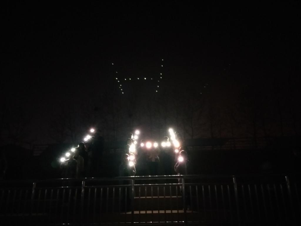 当晚8点30,教育学院的同学们准时熄灯,走出宿舍,宿舍楼立刻沉寂下来,显得肃穆庄重。在关灯的这一小时中,同学们聚集在学校操场,部分同学登上观众席打开手机手电筒,摆出数字“1”和英文“H”,寓意关灯一小时,呼吁所有人节能从小事做起。接着大家一起在操场上唱歌做游戏,进行散步、慢跑等活动,感受着夜晚的静谧和美好。