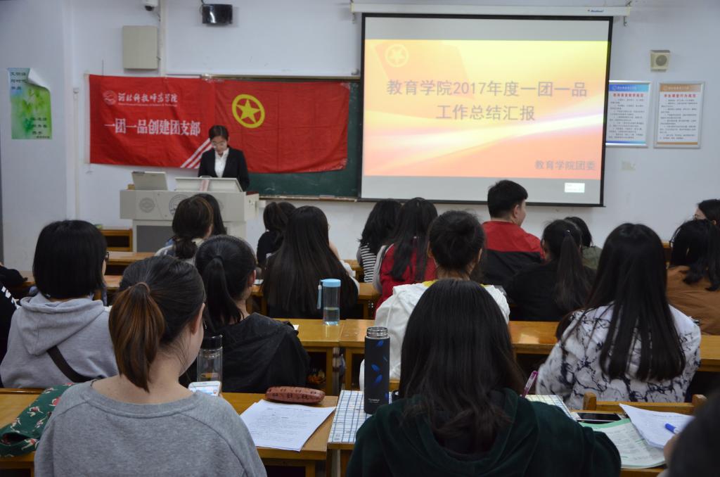 2018年3月28日下午七点,我院团委于教学楼406教室开展了2017年度一团一品工作汇报活动。教育学院团委负责同志出席了活动。