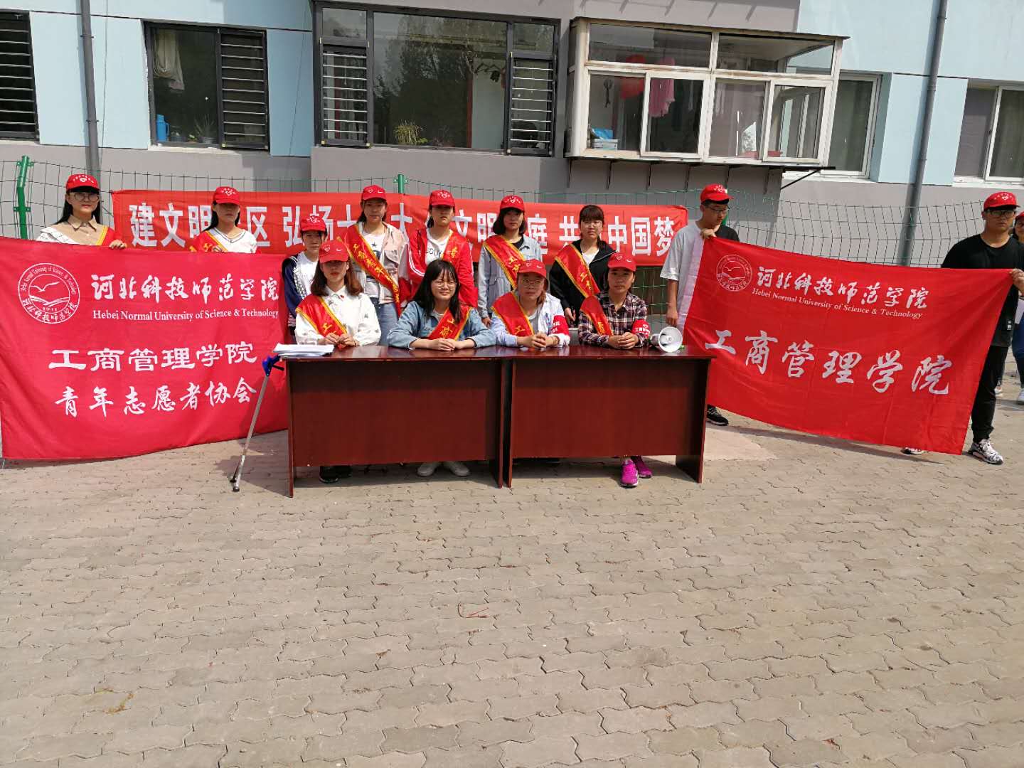 2018年5月5日上午,河北科技师范学院工商管理学院志愿者到文耀里社区开展了“宣讲进社区 服务惠民生”志愿服务活动,文耀里社区书记和工商管理学院团委书记及学生共35名志愿者参加了此次活动。