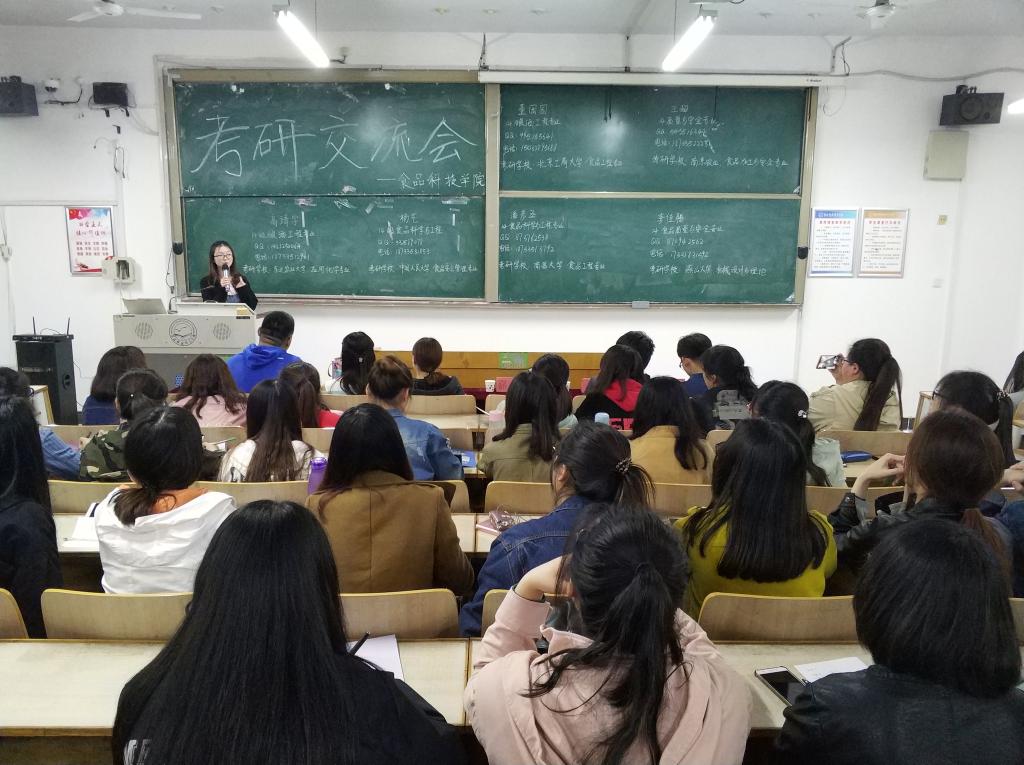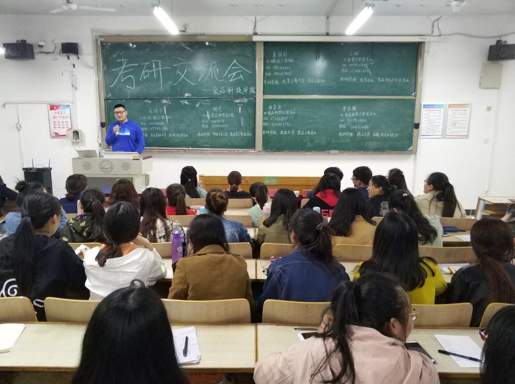 为激发同学们的学习热情,营造良好的学习氛围,食品科技学院于2018年5月10日晚7:00在C110举办了以“考研面对面”为主题的考研交流会。