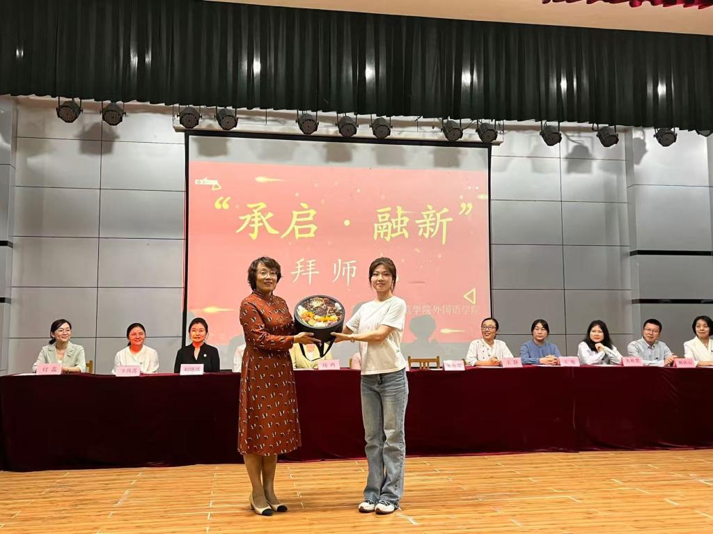 10月14日,报告厅内暖意融融,一场承载着文化传承与技艺接力的拜师礼温情启幕。外国语学院领导班子及教研室学科负责人、学工部负责人共同见证了这一传承时刻。在全体师生的共同见证下,开启教学相长的新旅程。