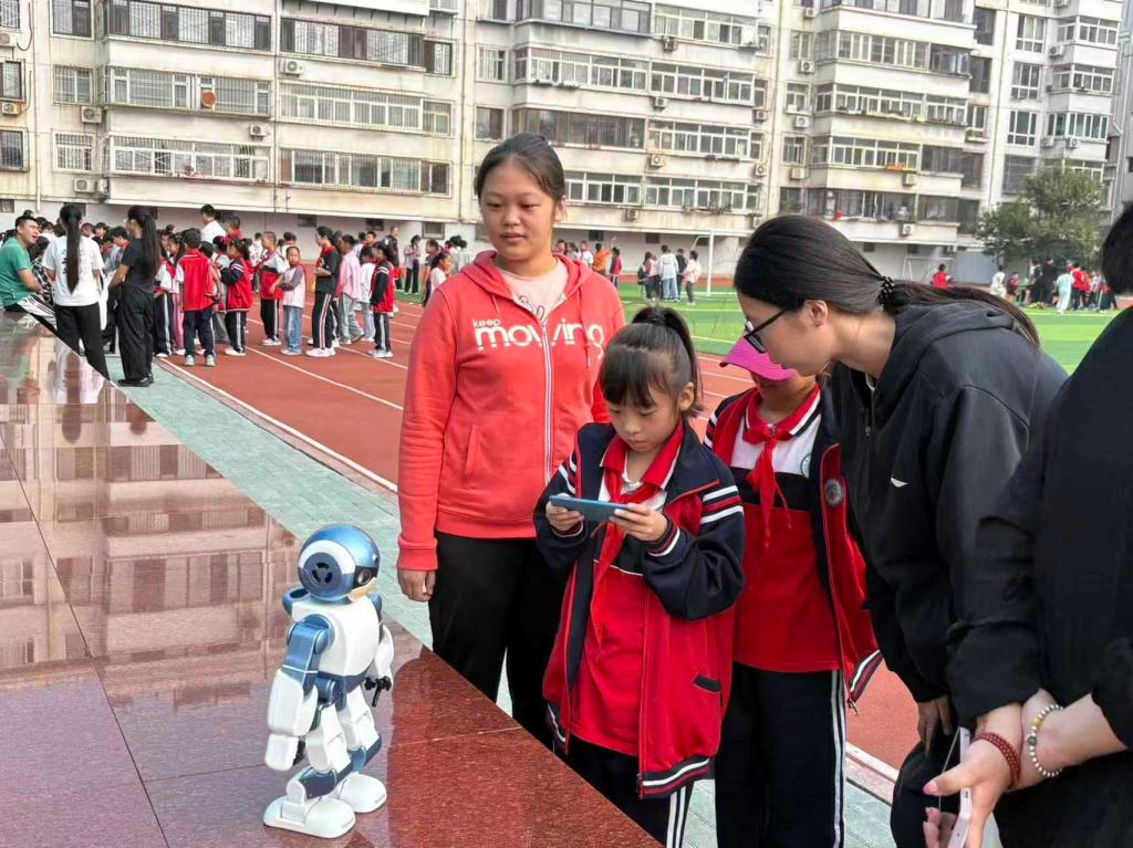 为进一步培养学生的创新思维与实践能力,将高校学科资源与地方基础教育需求精准对接,激发小学生的科学探索热情,9月30日上午,数信学院志愿者前往山海关兴华小学,共同开展科技节活动,为该校学生带来沉浸式科技体验。 活动现场,志愿者带来的机器人模型吸引了大批同学围观。志愿者们耐心地向同学们讲解机器人的工作原理,还邀请小学生亲手操作遥控器,让机器人完成前进、转弯、俯卧撑等动作。在VR互动区,大学生志愿者们通过生动的动画演示,向小学生介绍了VR的基本概念,并带领大家体验VR眼镜。大家认真听讲、积极尝试,在轻松愉快的氛围中开启了VR启蒙之旅。科技知识问答环节则进一步激发了同学们的求知欲,大家踊跃举手抢答,现场气氛热烈非凡。