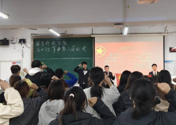 2025年10月17日,园艺科技学院举行新发展团员入团仪式。学院团委负责人、学生会成员和51名新发展团员出席了本次活动。