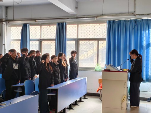 活动现场,老团员代表为新团员代表佩戴团徽,并颁发团员证。在学院团委组织部负责人鲁佳玮带领下,全体新团员面向团旗庄严宣誓,誓言铿锵有力。新团员代表王经萱表达了对加入团组织的自豪和今后努力奋斗的决心,焦馨怡分享了入团以来的成长体会。团委学生副书记毛馨月勉励全体团员坚定理想信念,担当时代使命。