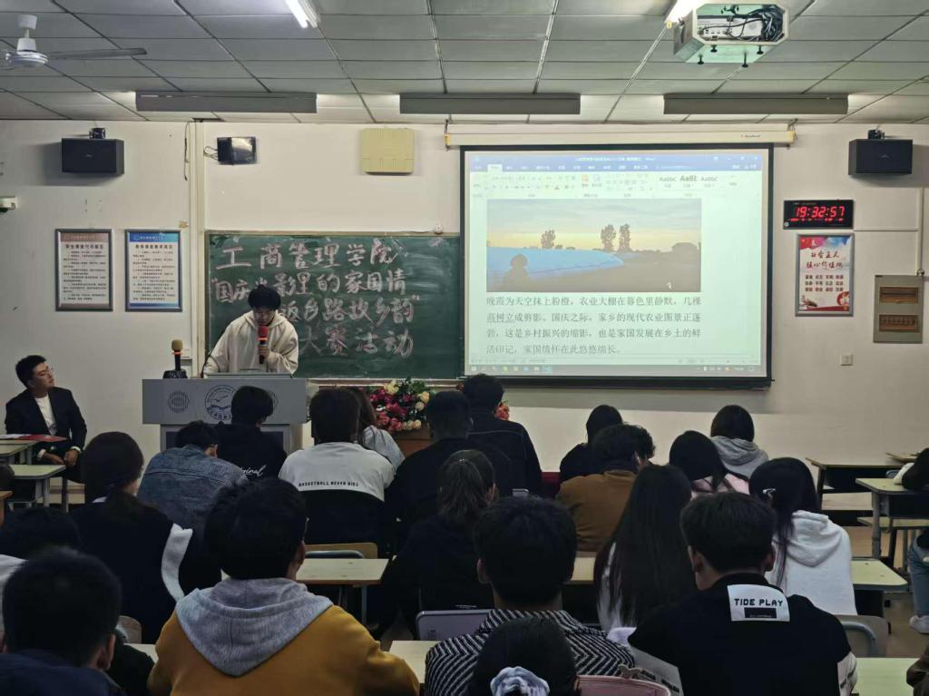 国庆期间,工商管理学院举办“国庆光影里的家国情—返乡路·故乡韵”摄影大赛,并于2025年10月13日在逸夫楼a501教室进行作品讲解展示活动。