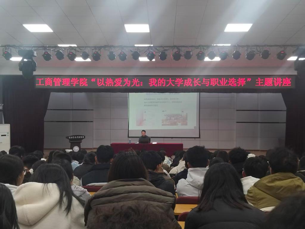 近日,工商管理学院“职引未来,成就人生”主题讲座于秦皇岛校区多功能厅成功举办。本次活动特邀学院优秀校友、现任燕山大学辅导员的袁靖轩担任主讲,学院260余名师生齐聚一堂,现场气氛热烈。