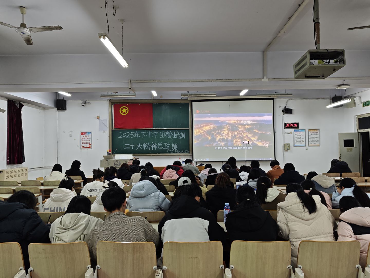 2025年11月3日,农学与生物科技学院团委举办了以“学习党的二十大、二十届四中全会精神思政课,绽放青春绚丽之花”为主题的团校培训活动,旨在引导学员深入学习贯彻党的二十大、二十届四中全会精神,通过专业实践和志愿服务将个人理想与国家发展紧密结合。本次培训以观看视频形式进行,五十名入团积极分子共同观看本次主题思政课视频。