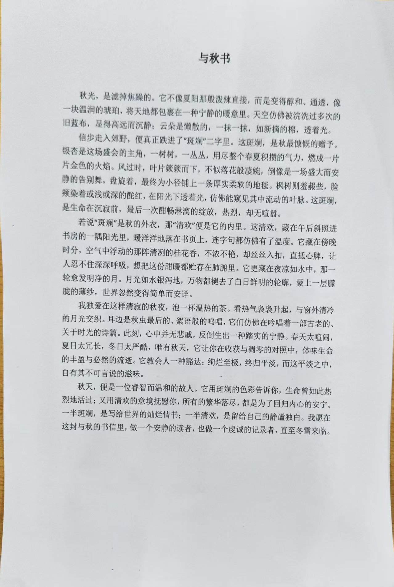 本次征文比赛面向文法学院全体学生,以“秋”为核心创作母题,鼓励学生跳出传统写景的桎梏,从多元视角诠释秋日意涵。无论是校园里飘落的第一片银杏叶、郊外田野里沉甸甸的稻穗,还是秋夜里的一轮皓月、亲友相聚的温暖时光,都可成为笔下的创作素材。参赛者既可描摹秋日斑斓的自然景致,用文字定格层林尽染、硕果飘香的视觉盛宴;也可书写秋日里的清欢心境,借笔墨抒发对时光流转、人生沉淀的深度思考,让每一篇作品都成为内心与季节的真挚对话。评审过程中,老师们逐字逐句品读参赛作品,在百余篇来稿中筛选出兼具思想性与艺术性的佳作,最终评选出一等奖1名、二等奖2名、三等奖3名,并为获奖学生颁发荣誉证书及相应积分奖励。此次征文比赛不仅是一场文学创作的比拼,更是一次校园文化的盛宴。参赛作品中,有学子以细腻笔触勾勒出“霜叶红于二月花”的绚烂秋景,让读者仿佛置身于色彩斑斓的秋日画卷;有作者借秋日萧瑟抒发“自古逢秋悲寂寥,我言秋日胜春朝”的豁达心境,传递出积极向上的人生态度;更有同学将秋日与成长相连,通过记录校园生活的点滴感悟,展现了当代青年的思考与担当,彰显了文法学院学子扎实的文字功底与丰富的精神世界。