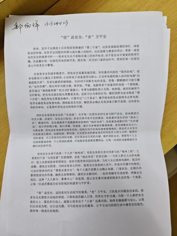 文法学院“‘宿’说安全,‘舍’卫平安”主题征文活动