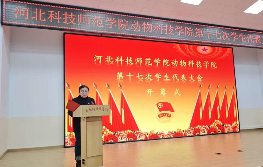 在全院师生共同关注与期盼下,河北科技师范学院动物科技学院第十七次学生代表大会于2025年12月02日隆重召开。本次大会是在全院深入学习党的理论、奋进新征程背景下召开的一次重要会议,旨在总结过去工作,擘画发展蓝图,选举新一届学生会领导机构。学院党委书记曹健慧、党委副书记任铁艳,团委书记赵祥瑞、学工办主任宋岳奇、辅导员孙玉乔等领导老师应邀出席开幕式,与全院62名学生代表齐聚一堂,共商学院学生会发展大计。