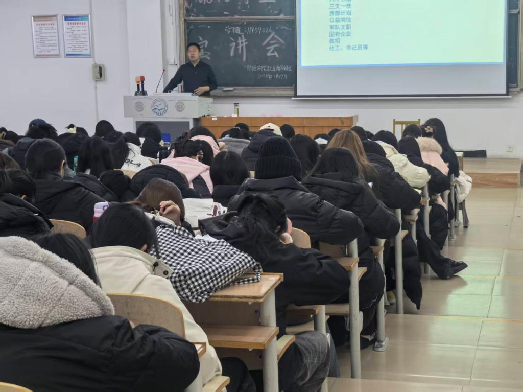 为帮助学生破解选课困惑、明晰申论学习与学业规划方向,2025年12月19日,财经学院在B206教室举办以“入门申论课堂,规划学业方向”为主题的申论选修宣讲会。