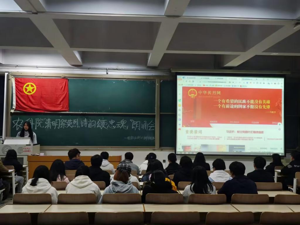 4月5日,农学与生物科技学院团委组织开展了以“清明祭英烈,诗韵颂忠魂”为主题的清明节革命烈士诗词朗诵活动, 旨在深切缅怀革命先烈的丰功伟绩,传承红色基因,弘扬爱国主义精神。本次活动精心设计了“云端祭拜”、“诗词朗诵”和“思想交流”三个环节,与会人员在庄严肃穆的氛围中追思先烈,汲取奋进力量。