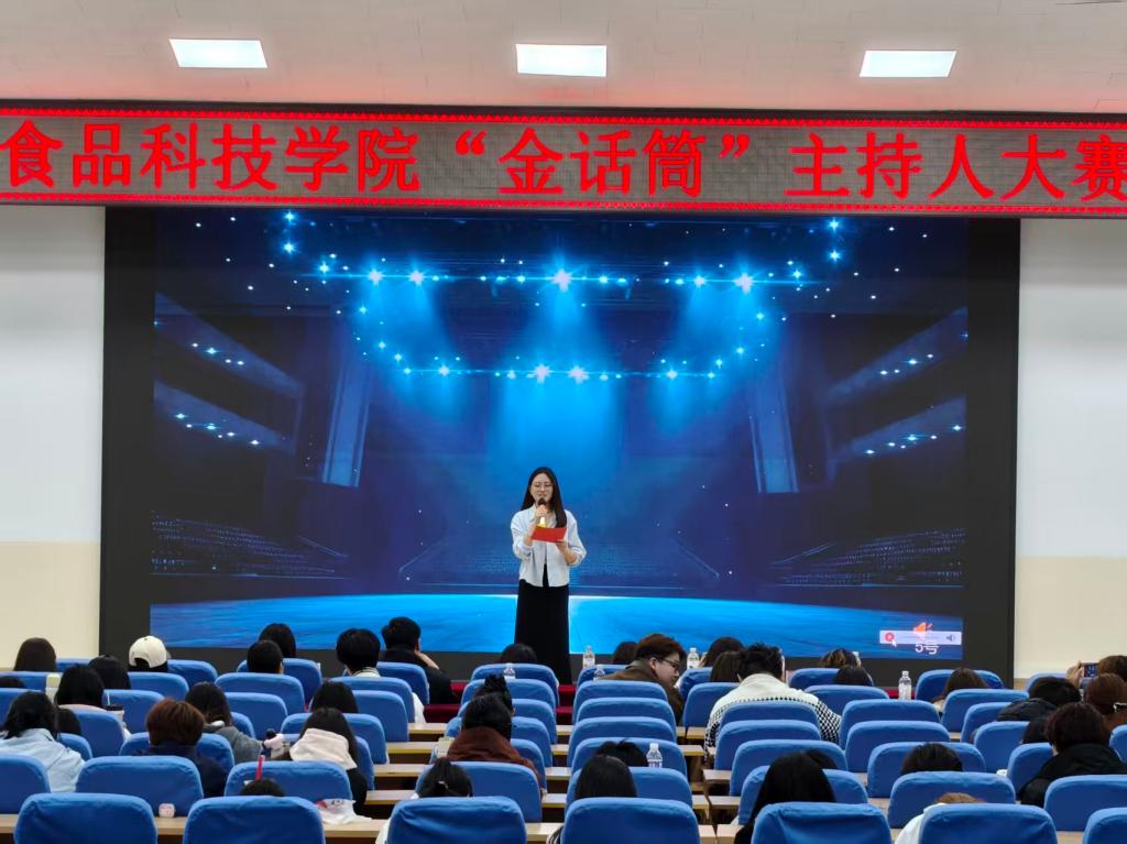 2026年3月31日,食品科技学院举办“金话筒”主持人大赛。大赛以“声启新境,‘主’领未来”为主题,面向全院学生开展,旨在提升学生语言表达、舞台主持与临场应变能力,发掘校园主持新星。