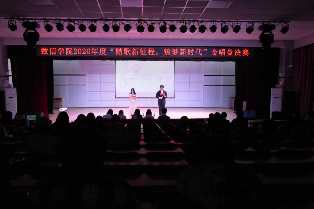 2026年4月8日晚,数学与信息科技学院“踏歌新征程 筑梦新时代”金唱盘校园歌手大赛决赛在多功能厅盛大举行。240余名师生参加了此次活动。