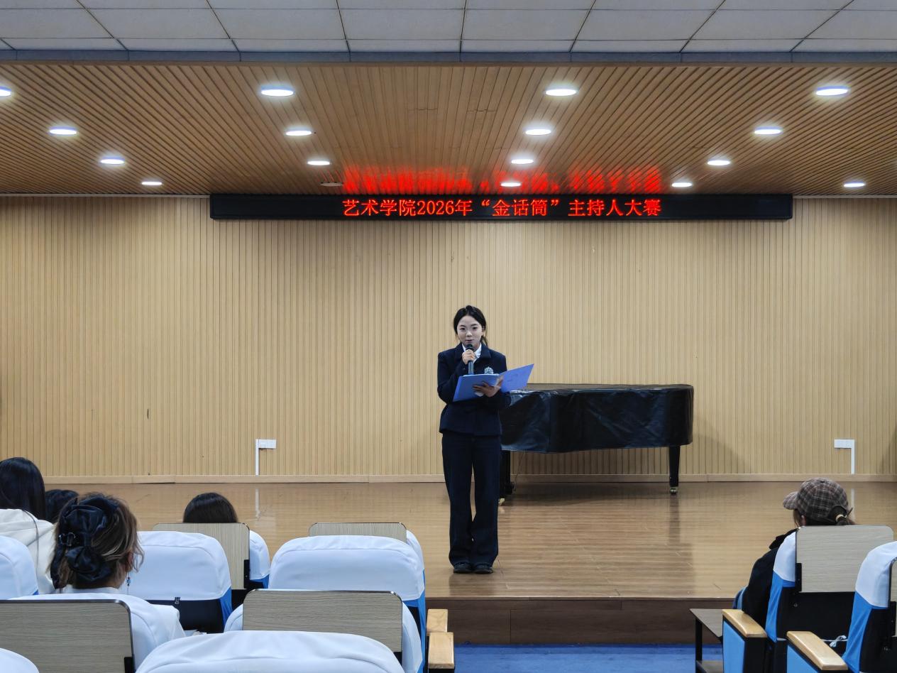 为深入推进校园文化建设,丰富大学生课余文化生活,为热爱主持的学子搭建展示自我、追逐梦想的舞台,4 月 10 日晚7:00,艺术学院“金话筒”主持人大赛院内选拔赛在艺术楼众诚报告厅举行。本次大赛由艺术学院学生会主办,面向全体艺术学院学生开展,共有二十余名选手参与了比赛。