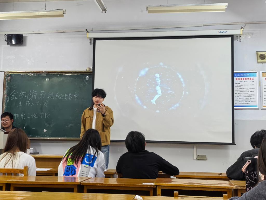 2026年4月13日,机电工程学院在开发区Z404举办“金韵流芳,话绘锦章” 金话筒主持人大赛。本次大赛吸引了学院各专业的 50余名学子参加。